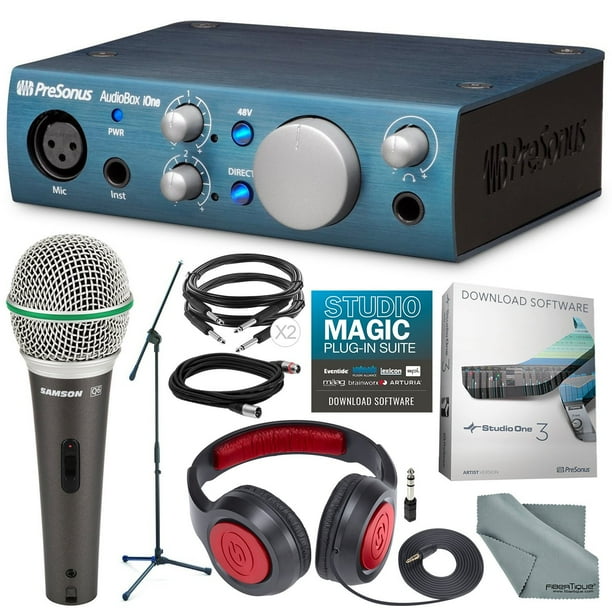 Presonus Audiobox Ione 2x2 Usb Ipad Recording System And Deluxe Bundle W Samson Q6 Mic Sr360 Stereo Headphones Xpix Cables Fibertiqu Cloth More Walmart Com